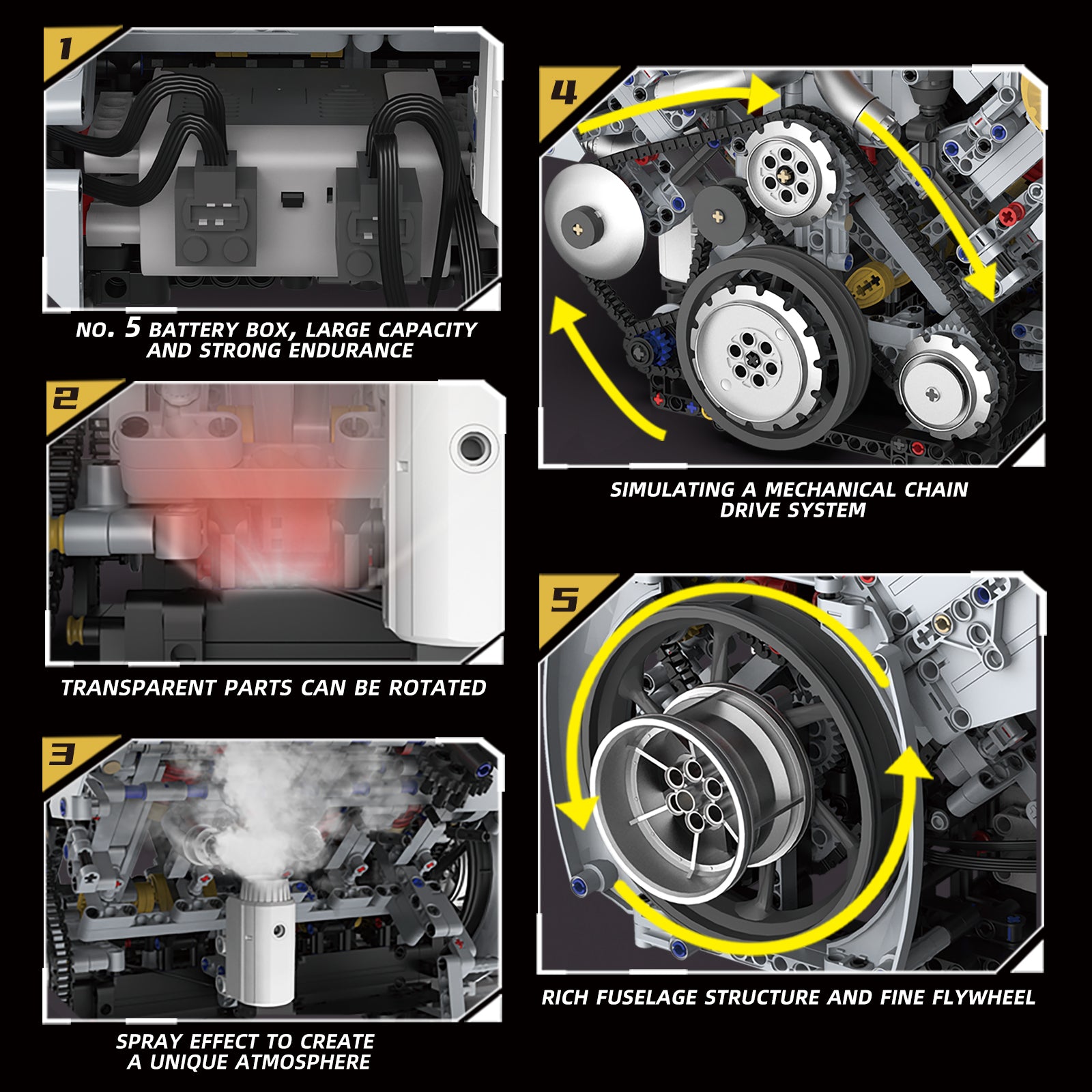 Build the pinnacle of automotive engineering with this 3160+ piece V8 engine model. Featuring an intricate assembly of moving pistons, precisely engineered crankshaft, and multi-layer cooling system, this kit delivers an unprecedented building experience that captures the essence of supercar performance.