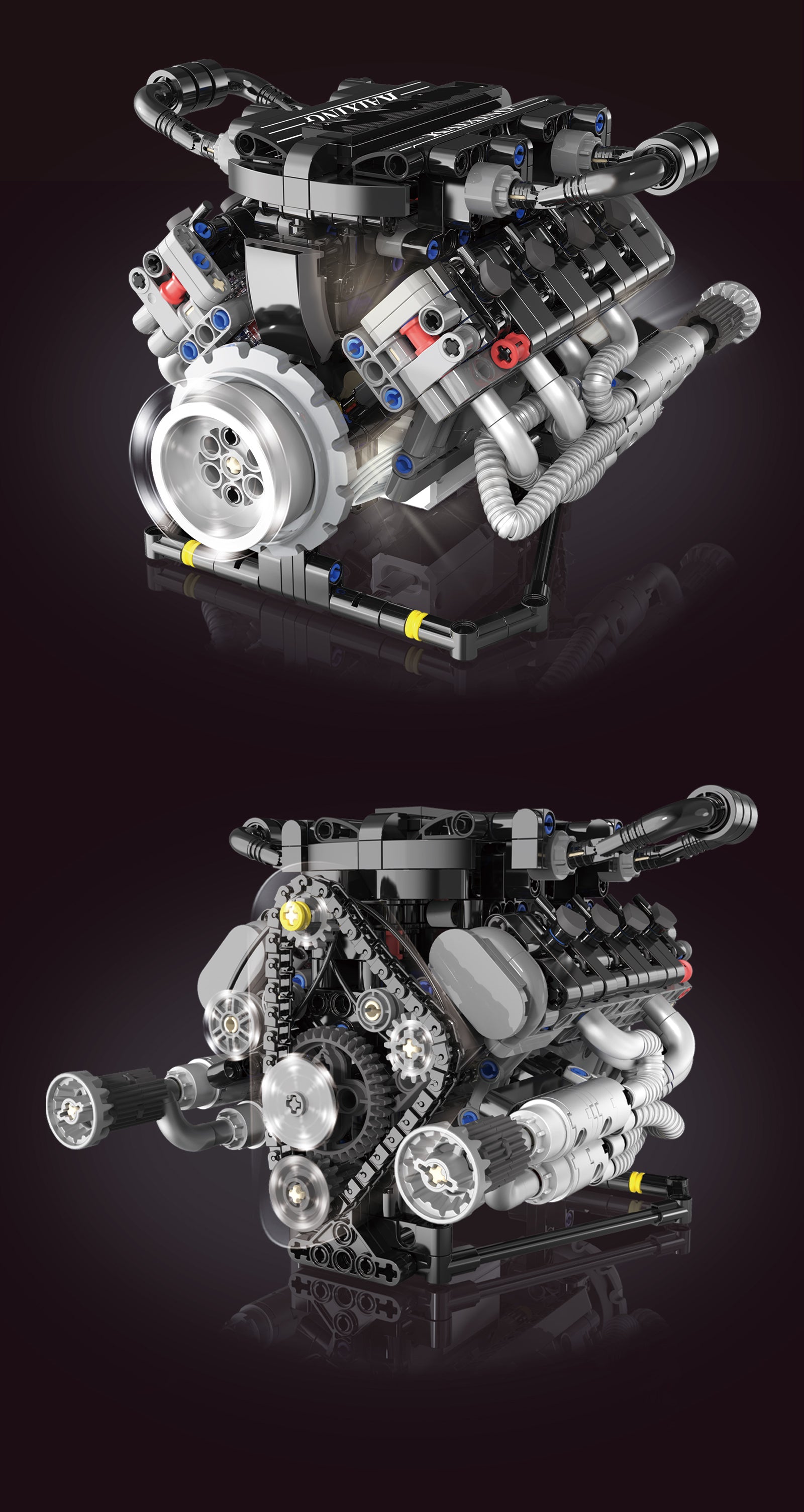 Integrated LED illumination system highlights the engine's sophisticated structure, creating stunning visual effects that showcase every mechanical detail.