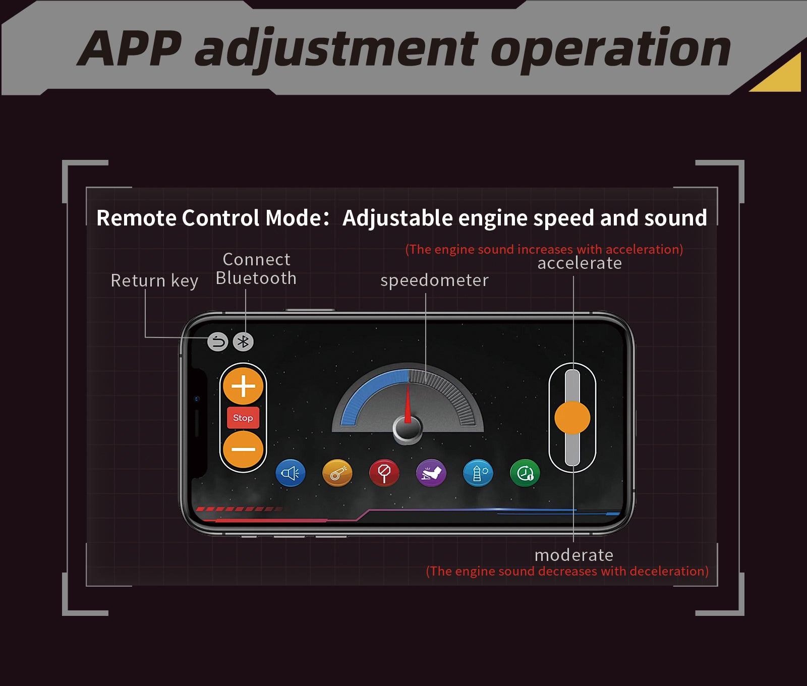 Operate your engine through the dedicated mobile app or included remote control. Start and stop the engine smoothly while enjoying realistic engine sound effects.